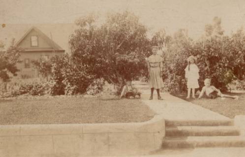 Bertha and Spencer were very concerned about Burt, their youngest son. They worried that he would not live out the year…he was sickly and they thought he might be "tubercular" so they sought the dryer climate of California. (Phonto below: Burt. Ethel, Babe and Bill, 1902-1904?? Chicago? Los Angeles??)